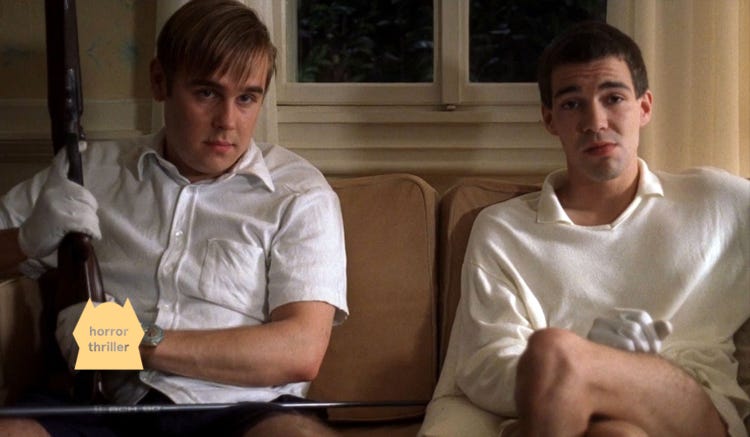 What it’s about: Georg (Ulrich Mühe), his wife Anna (Susanne Lothar), their son Georgie (Stefan Clapczynski), and their dog Rolfi arrive at their lakeside vacation home for a week of relaxation. However, when Paul (Arno Frisch) and Peter (Frank Giering) arrive, their weekend becomes anything but.