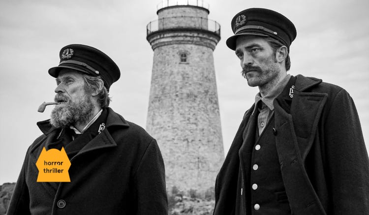 Here’s what it’s about: In the late 19th century, a lighthouse keeper (Willem Dafoe) and his assistant (Robert Pattinson) slowly descend into suspicion and madness as they become isolated on a tiny New England island by a storm.