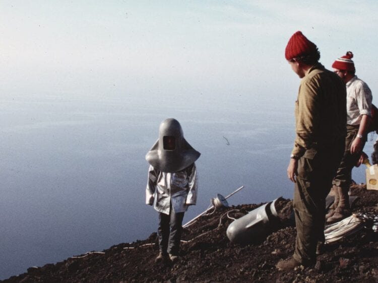 With every breathtaking, impossible shot—as the vibrant reds and oranges of the magma bleed through the frame, or the gray smoke distorts and envelops the landscape—there is love: in the supernatural scenes they are witnessing, in the sheer effort and bravery it took to document it all, in the companionship Katia and Maurice shared, side by side as they stood at the edge of the abyss. And then there is love for us—the unknown viewers and curious humans they hoped to connect with, to share the thing they loved more than anything else. Like a volcano erupts and changes everything in its wake, there is love in all that they created and all that they left behind.